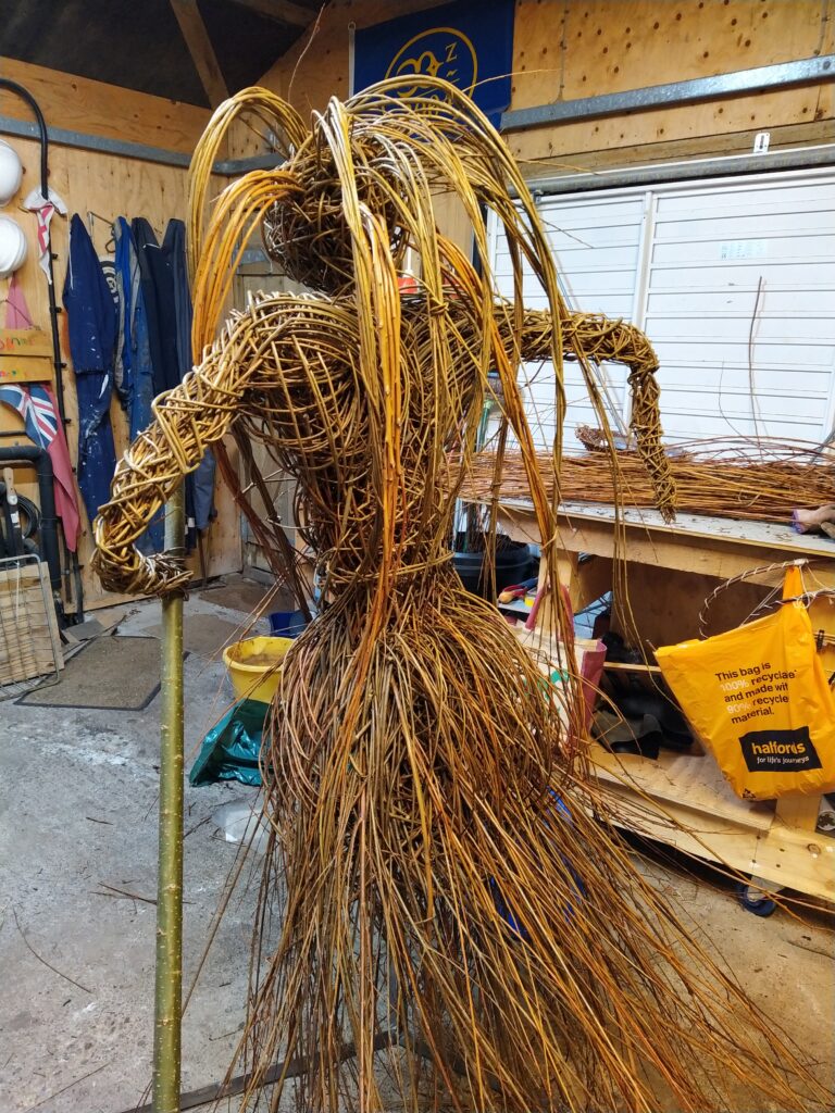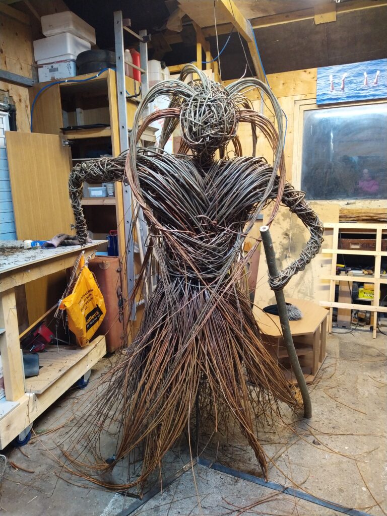 Meet Cliodhna (pronounced Klee-Na), my Celtic Goddess of the sea. She is a fearsome creature, defending her fellow sea creatures as she strides across the lawn (sorry, ocean…)