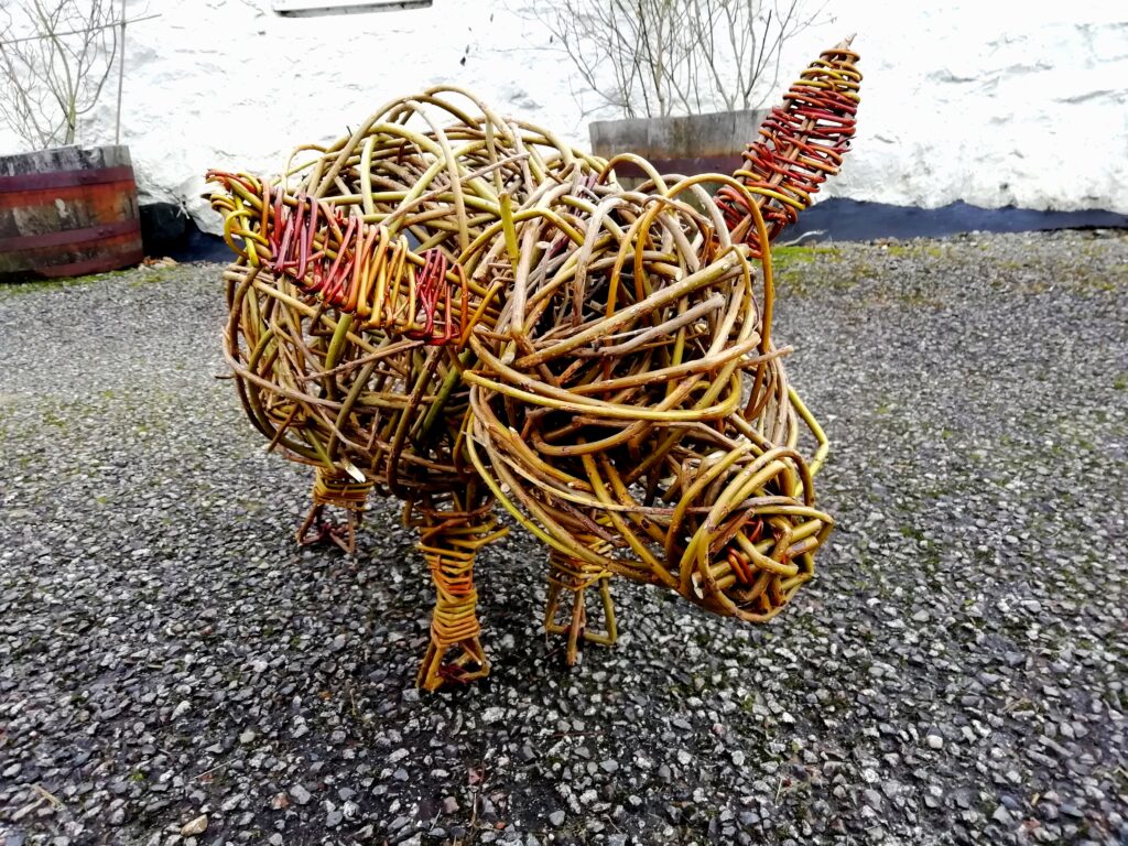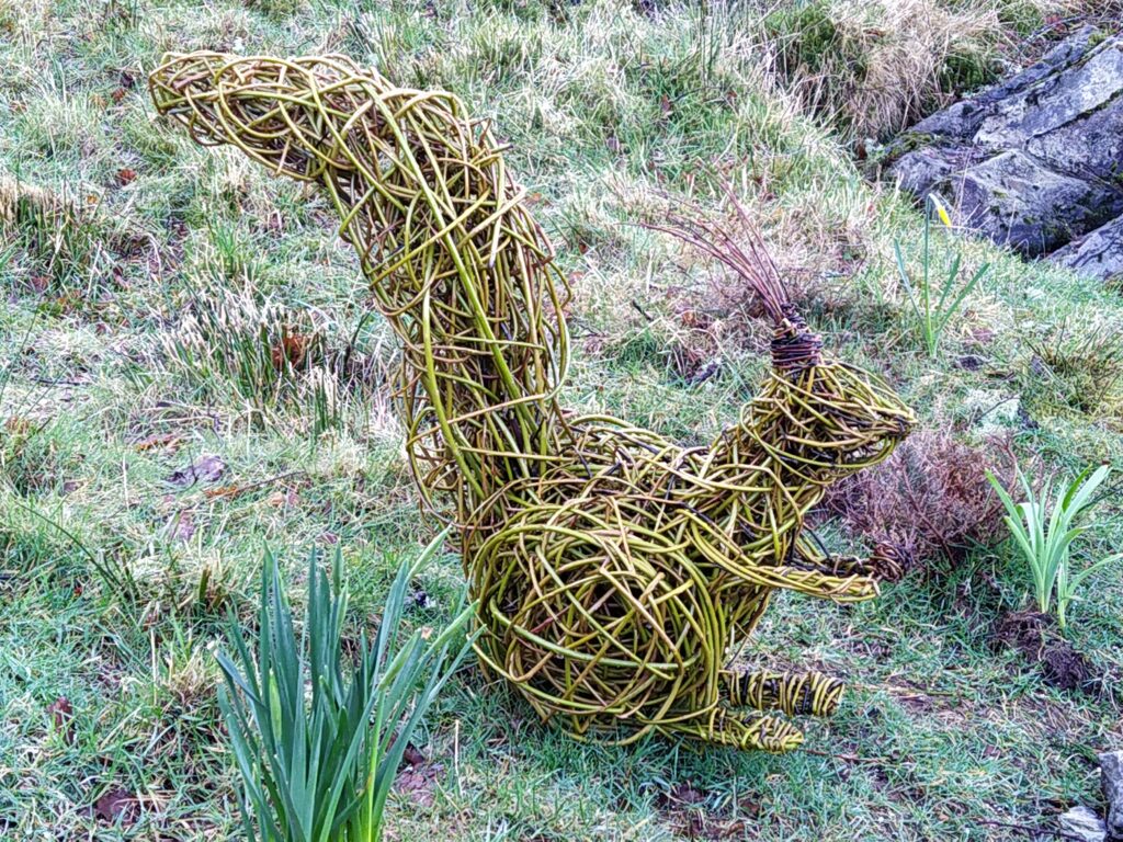How about something less maritime – a squirrel perhaps? Not the best photo but I think I am better with willow than I am with technology. This little fella is, of course, not lifesize as the others have been and I have taken the liberty of putting a nut in his paws to help bring it to life. Too cute?